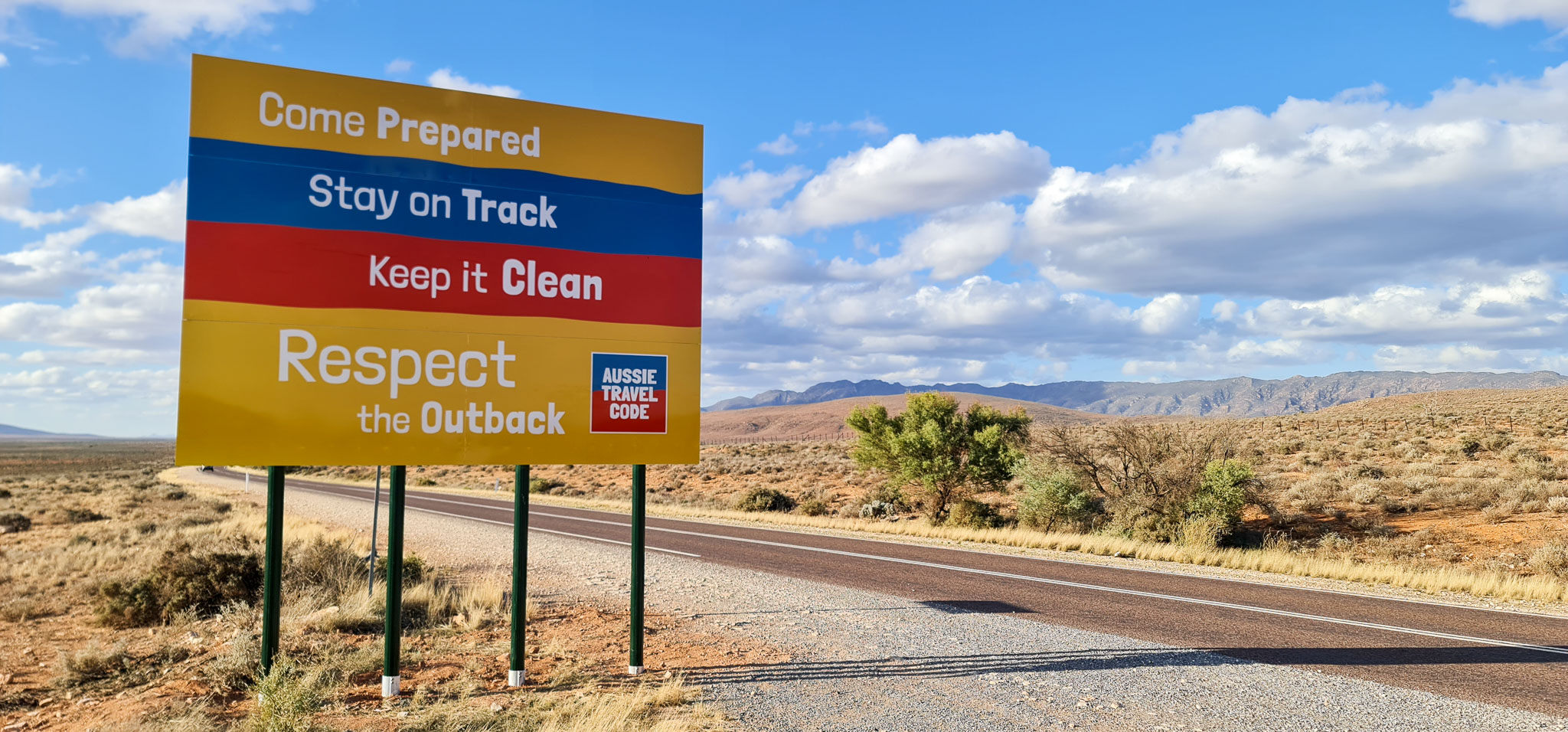 Our highest priority was to make the Aussie Travel Code's presence unmistakable and unavoidable wherever you travelled within the South Australian outback. We worked with a committee of people from the Outback Communities Authority, Regional Development Australia Far North, Flinders Ranges & Outback Tourism Marketing Committee, Arid Lands SA, and Station Stays SA, meeting fortnightly during the project period.